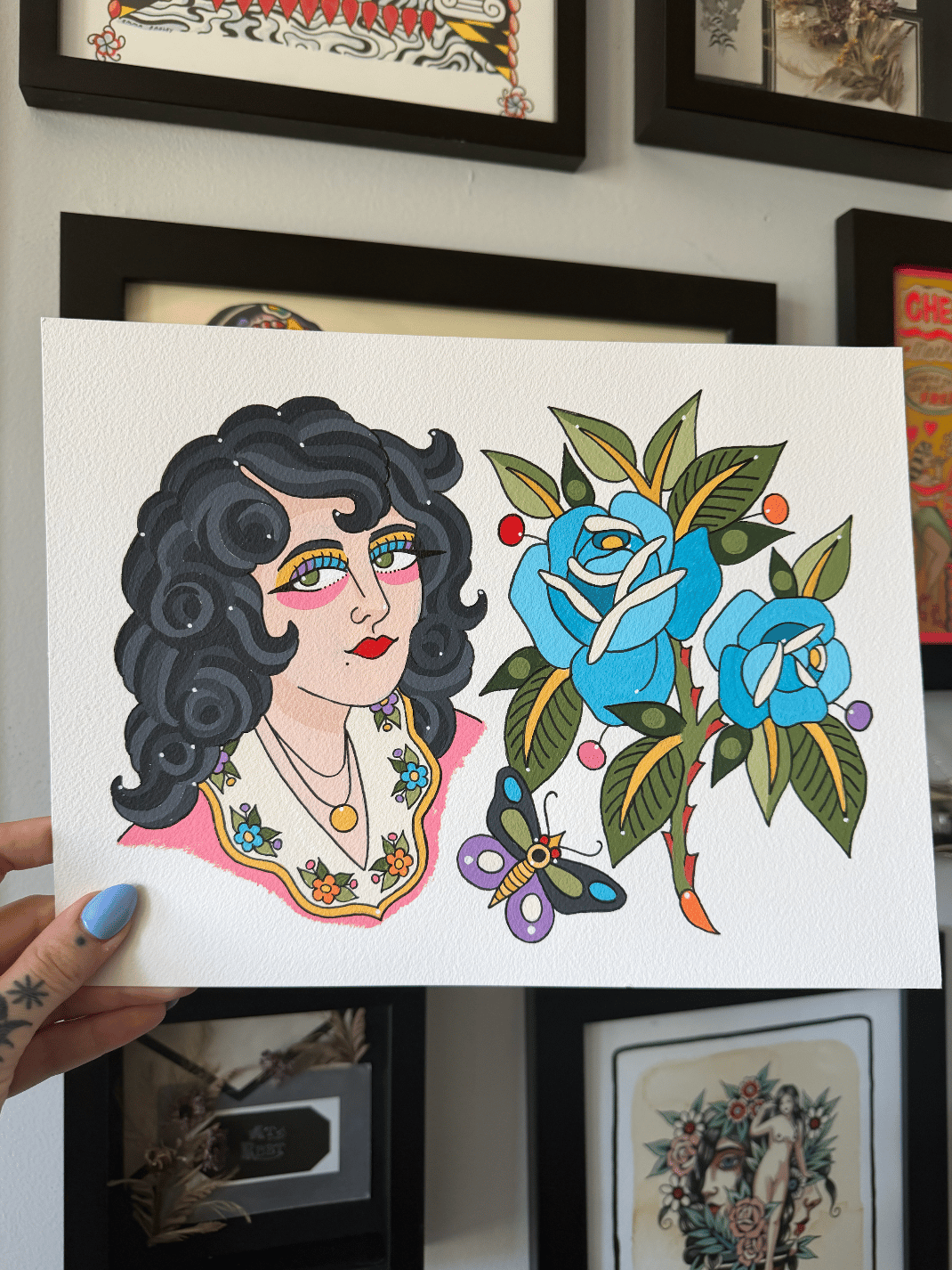 9x12 original painting by yours truly! a darling and her favorite flowers